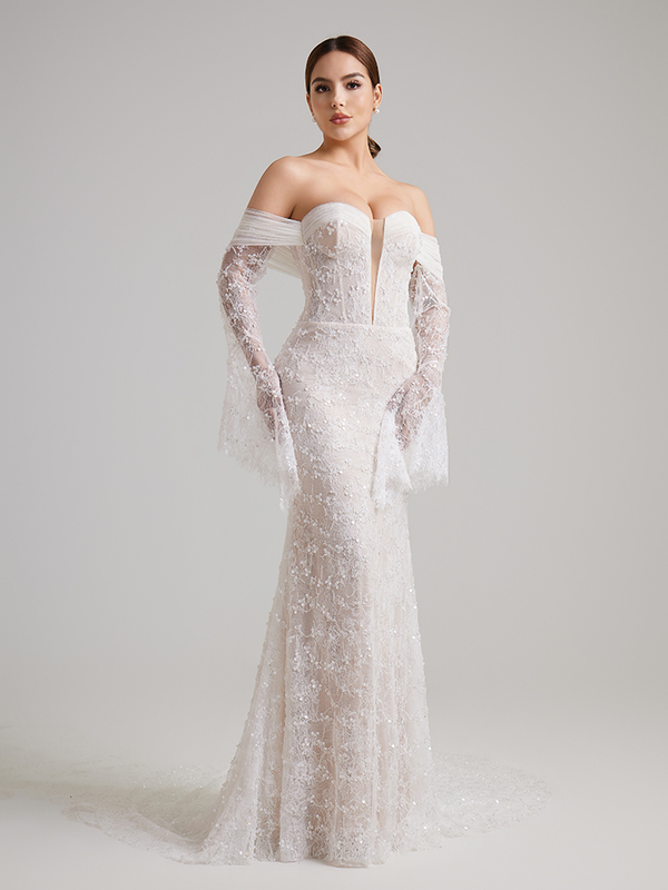 Float into your wedding day with these dreamy flared lace gloves! Featuring a sheer bell-sleeve design and delicate shimmer, they add ethereal romance to any bridal look. Perfect for outdoor or boho weddings—your fairy-tale finishing touch awaits.