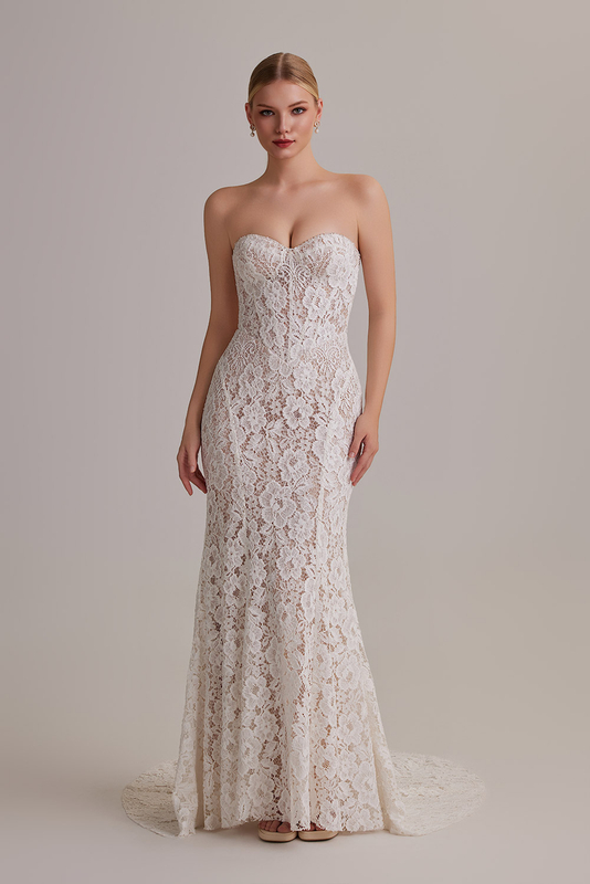 The Light Luxury 010 shines in formal settings, such as ballroom weddings and church ceremonies. Its elegant mermaid silhouette and trailing design complement grand venues, while the delicate lace adds a touch of sophistication that pairs perfectly with classic wedding decor. It’s also ideal for winter weddings, as the slightly thicker lace provides a touch of warmth without sacrificing style.