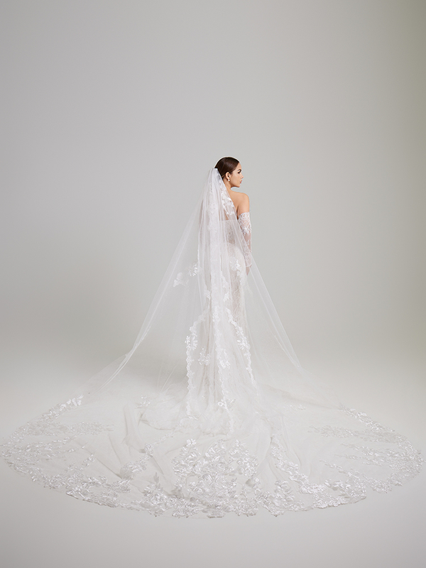 Step into your royal wedding with this showstopping embroidered cathedral veil! Handcrafted with intricate floral appliqué and subtle shimmer, its dramatic train creates unforgettable moments as you walk down the aisle. Customizable to match your gown—your high-fashion finishing touch awaits.