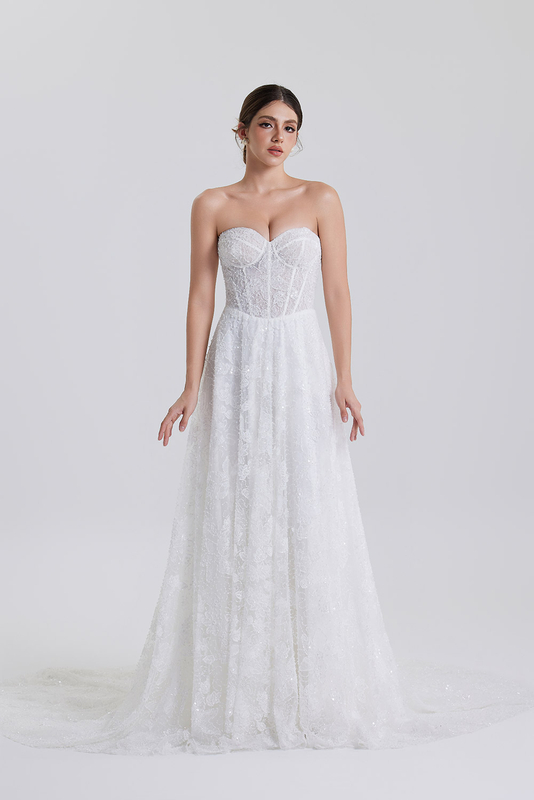 Every part of the dress is meticulously made by skilled craftsmen. The lace is carefully selected and precisely stitched to ensure that each pattern is intact and neatly arranged. The sequin inlay uses hand-made techniques to avoid falling off and ensure long-term use. The cutting of the skirt is optimized repeatedly to achieve a perfect fit with the human body, showing the bride’s graceful figure while ensuring free movement.